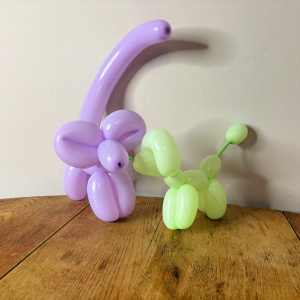 Balloons shapes include: dogs, cats, swords, rabbits, elephants, giraffes, candy canes, lasers, flowers and more!